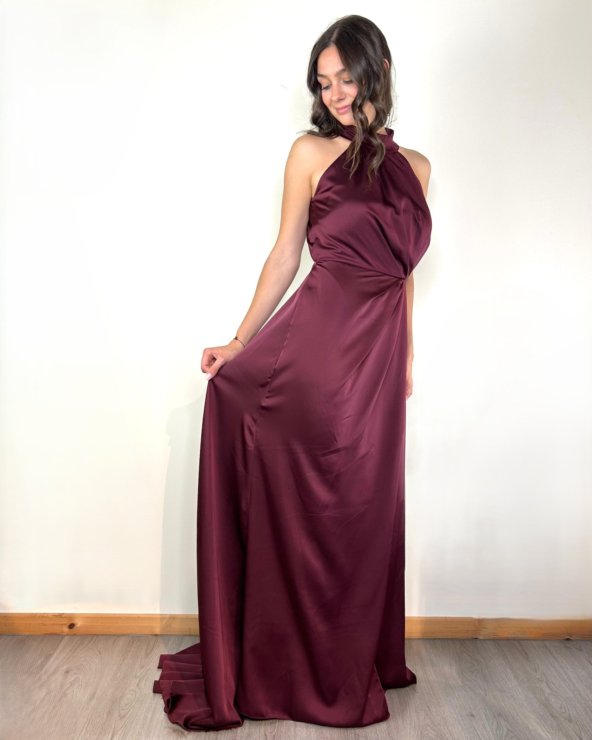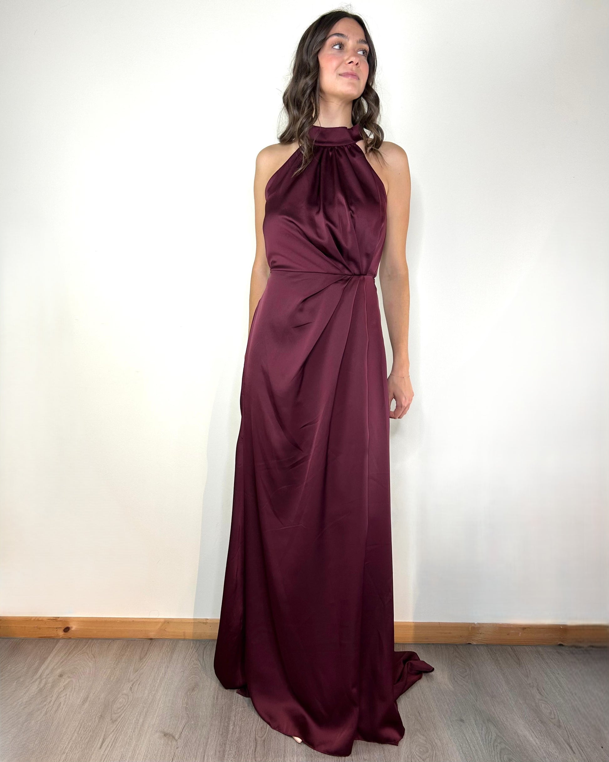 Meraviglioso abito da cerimonia, in tessuto satinato scivolato.