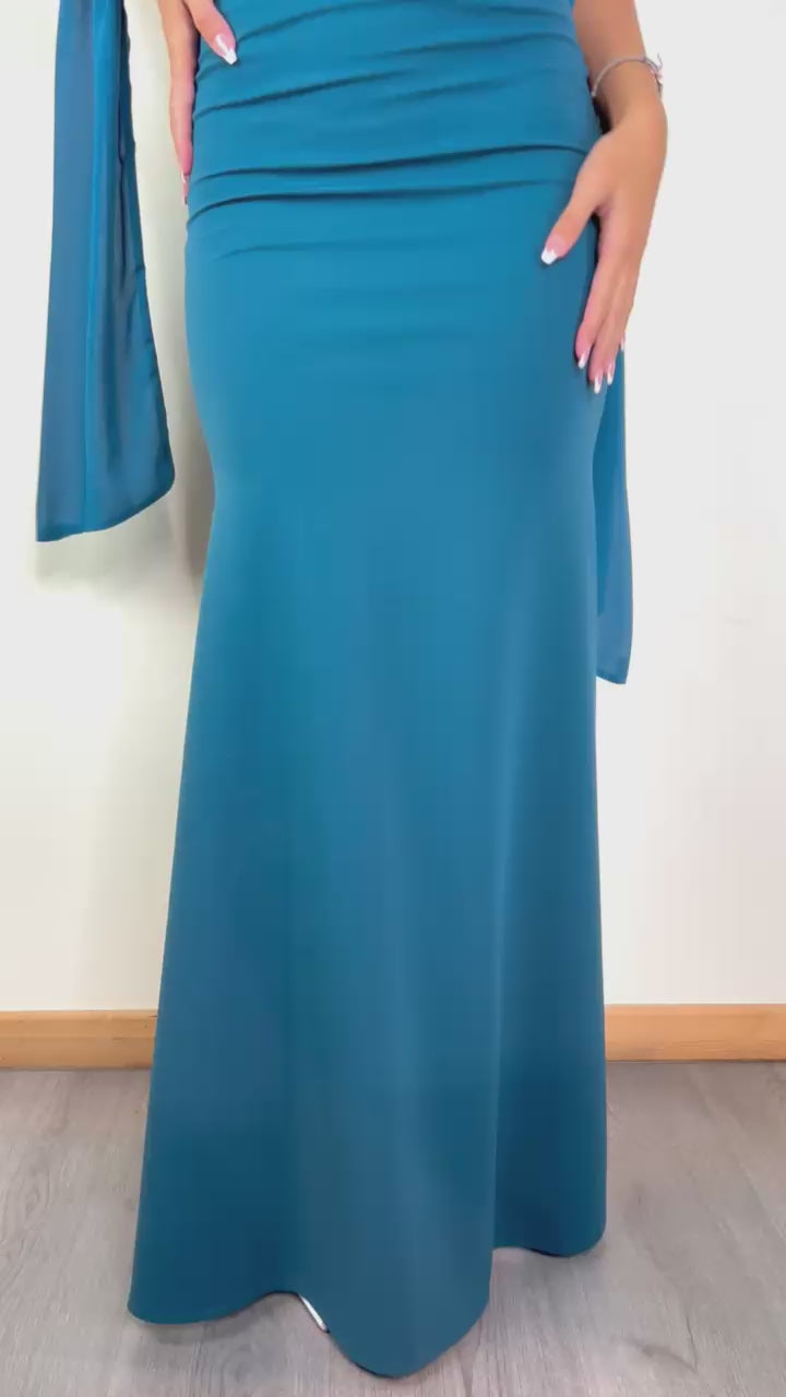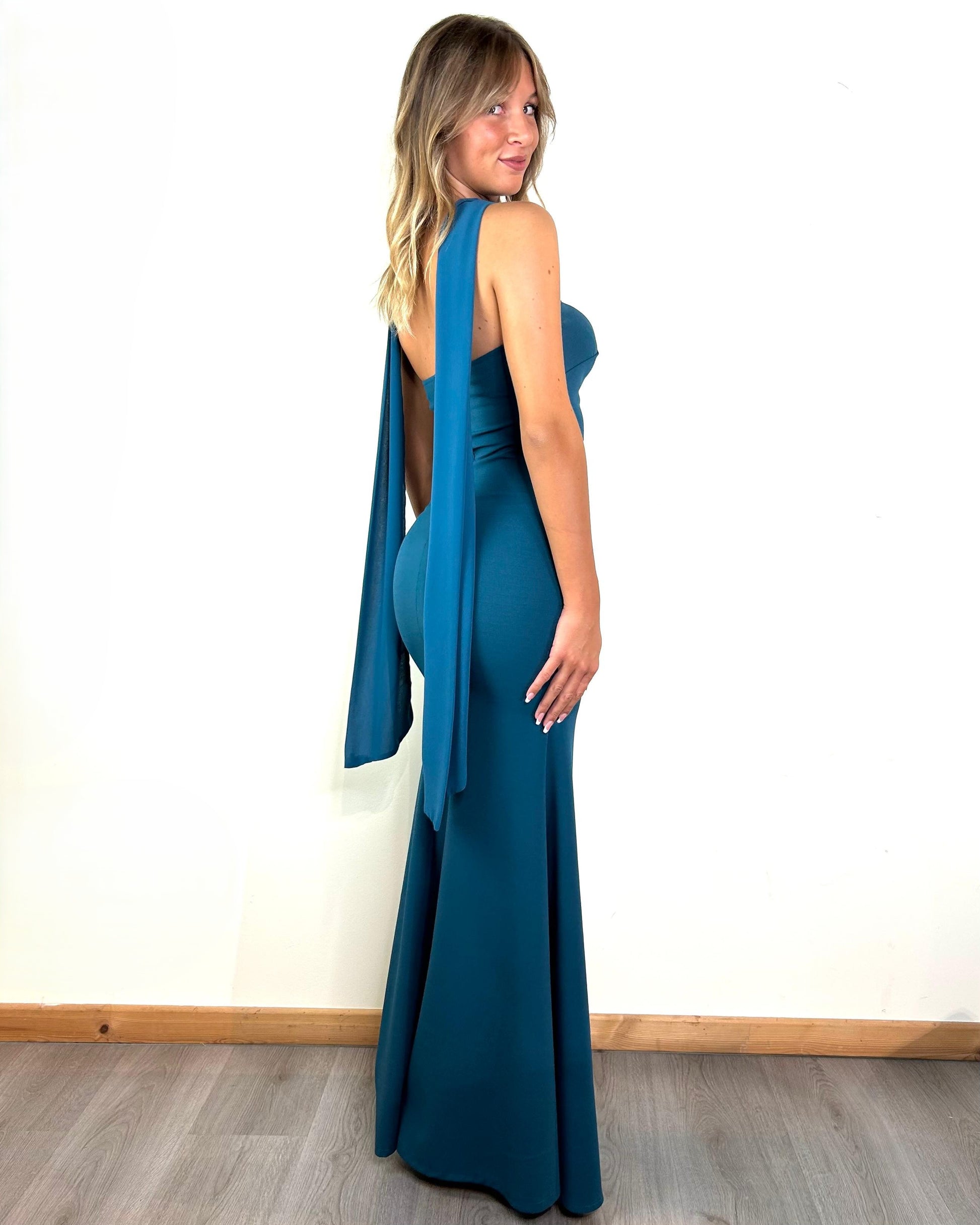 Abito da cerimonia modello a sirena, a fascia con coppetta imbottita.