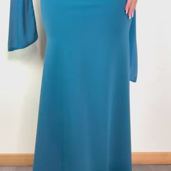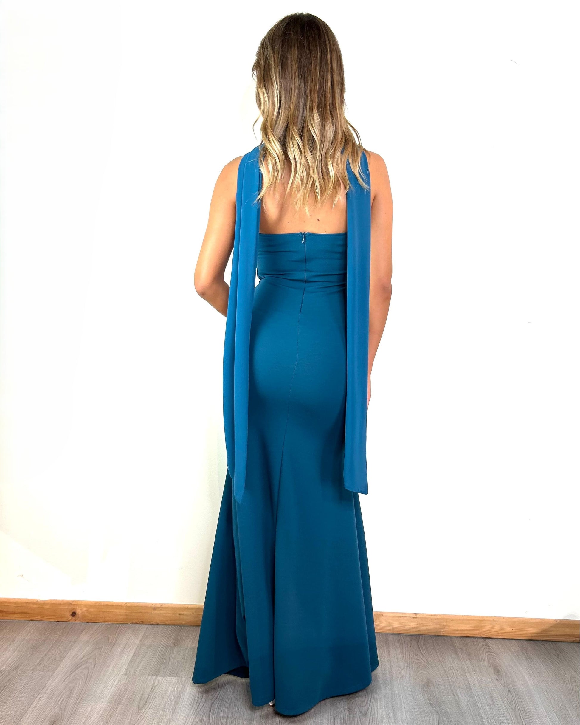 Abbinato alla sua stola leggera in tessuto simil chiffon.