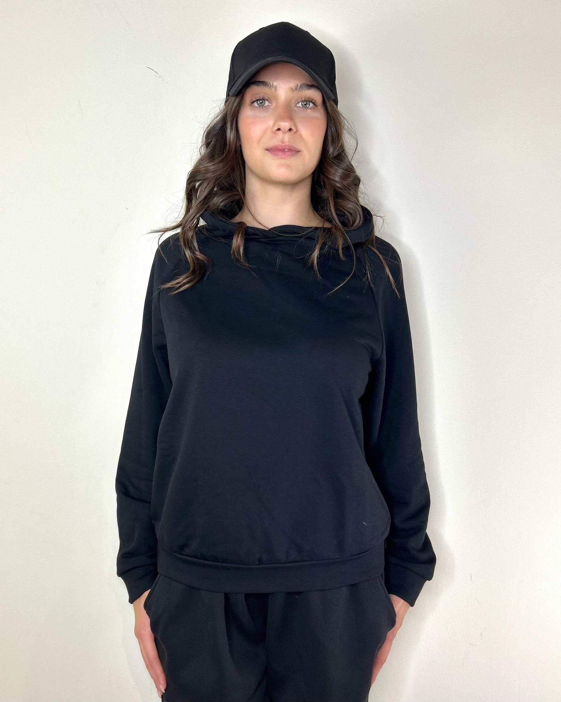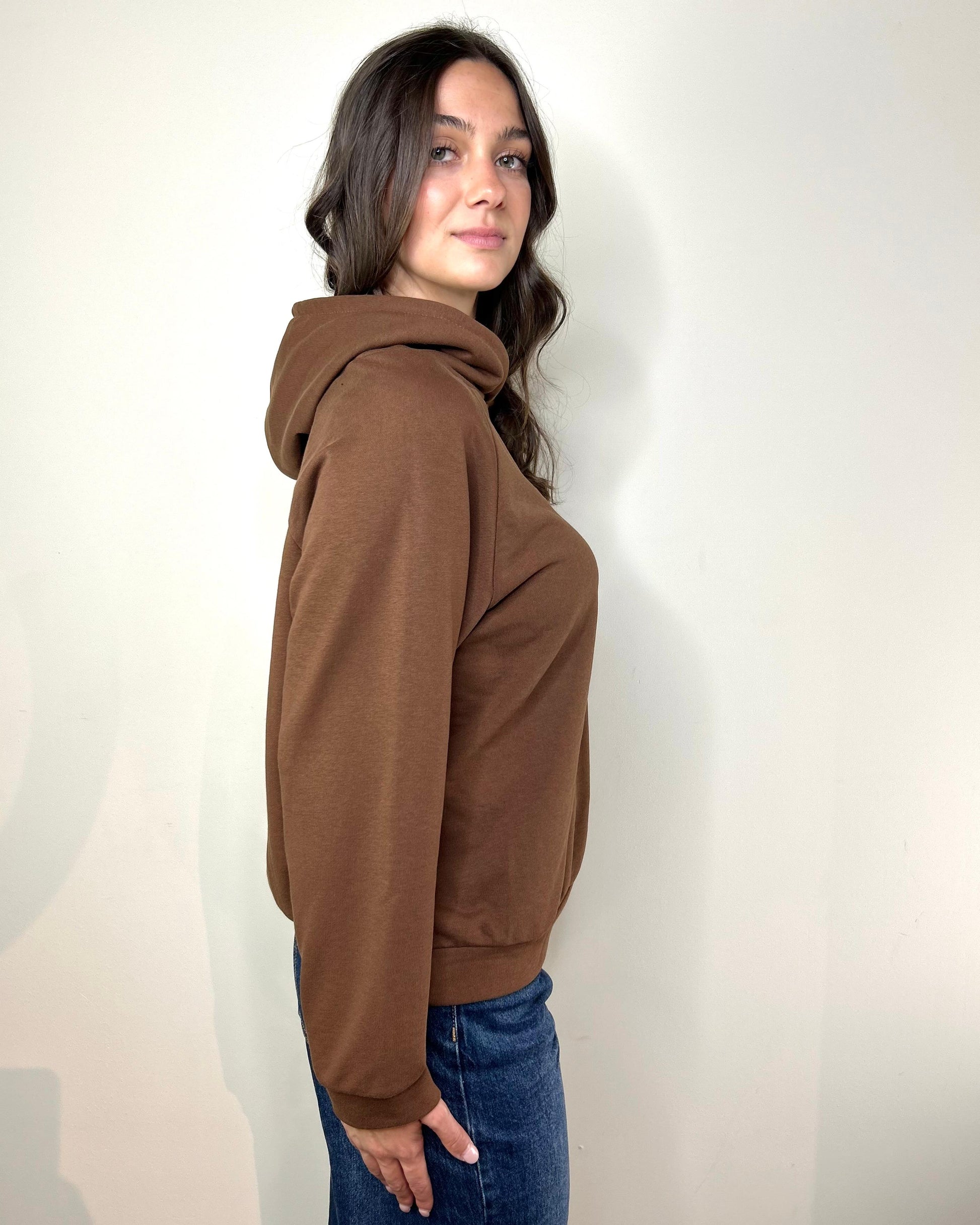 Felpa regular in cotone garzato con cappuccio, taglio classico, veste un po over fino alla 42, per il resto veste in figura.