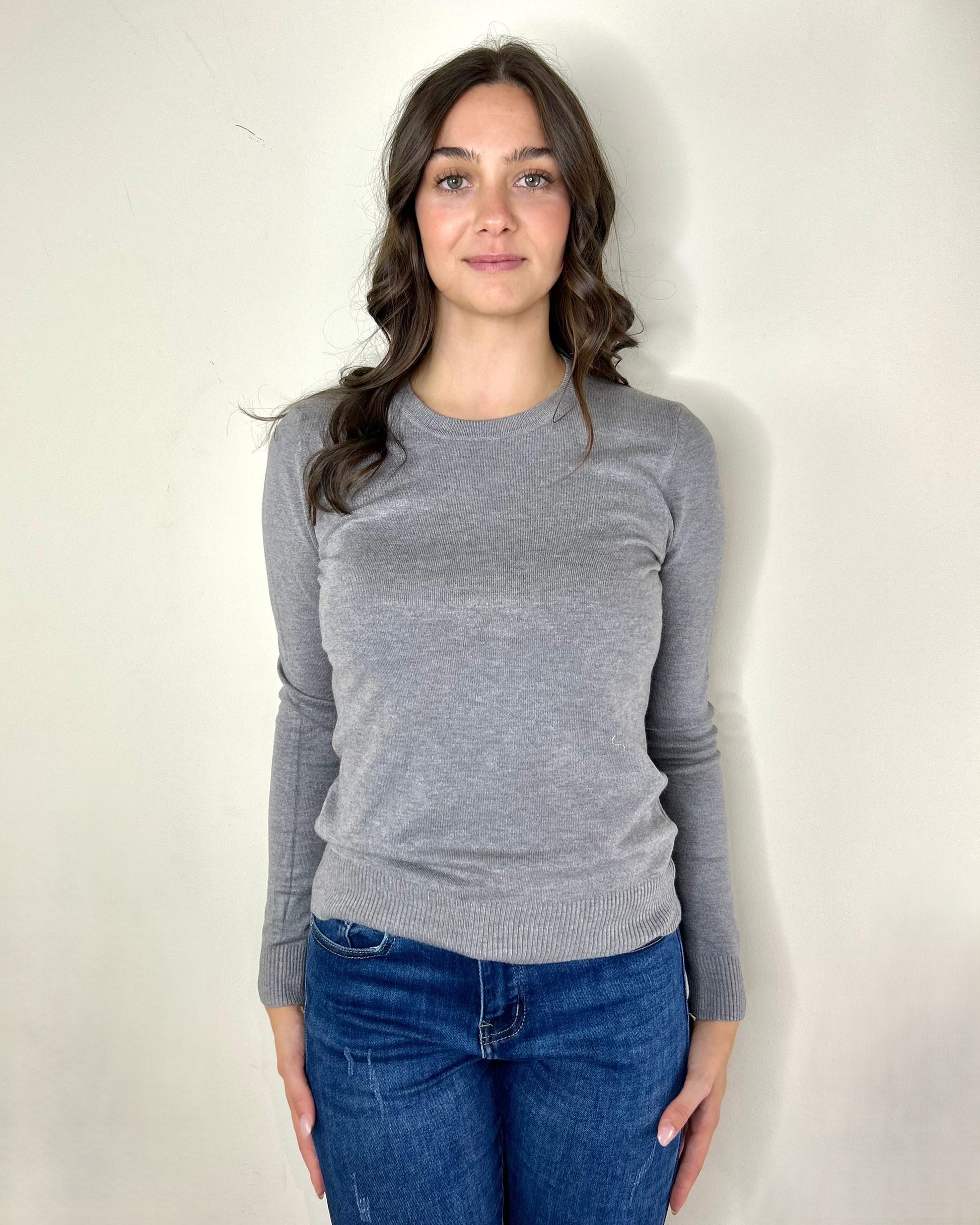 Maglioncino medio peso ideale come sottogiacca o per affrontare i primi freddi. Un basico da avere in guardaroba, un vero e proprio evergreen. Modello slim con scollatura a girocollo.