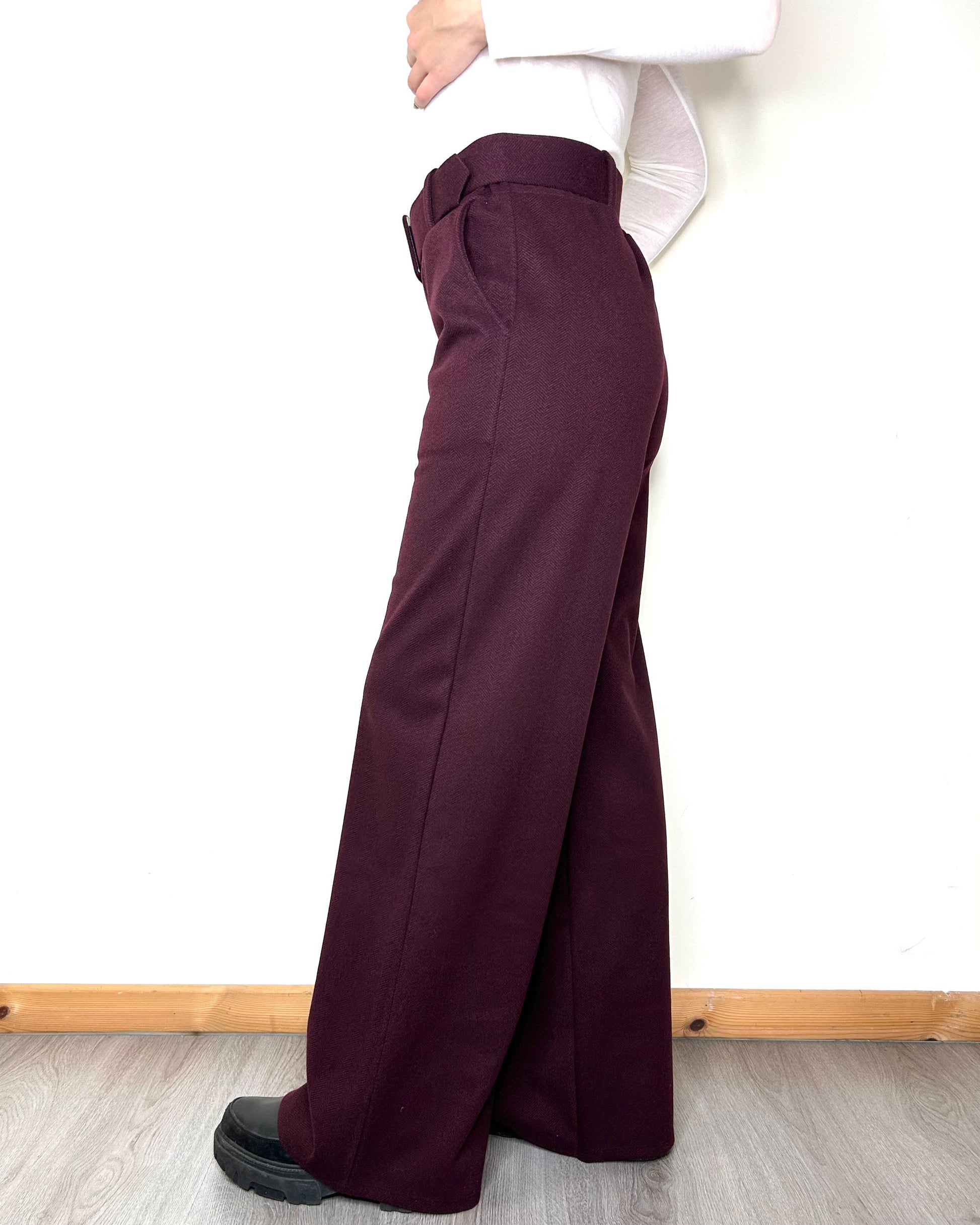 Pantalone in panno caldo, gamba ampia ma diritta.