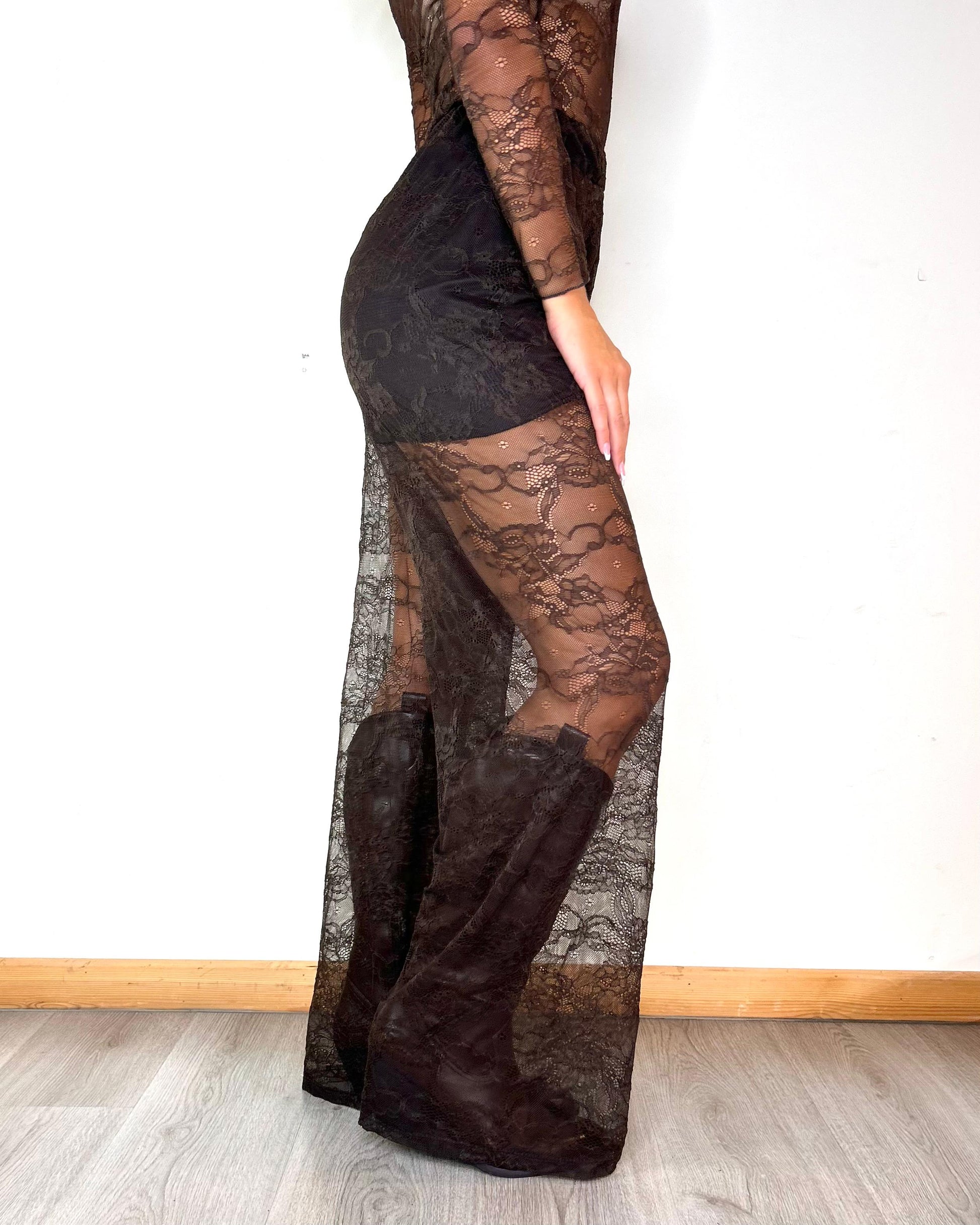 Pantalone in pizzo con short-sottoveste, elastico in vita.