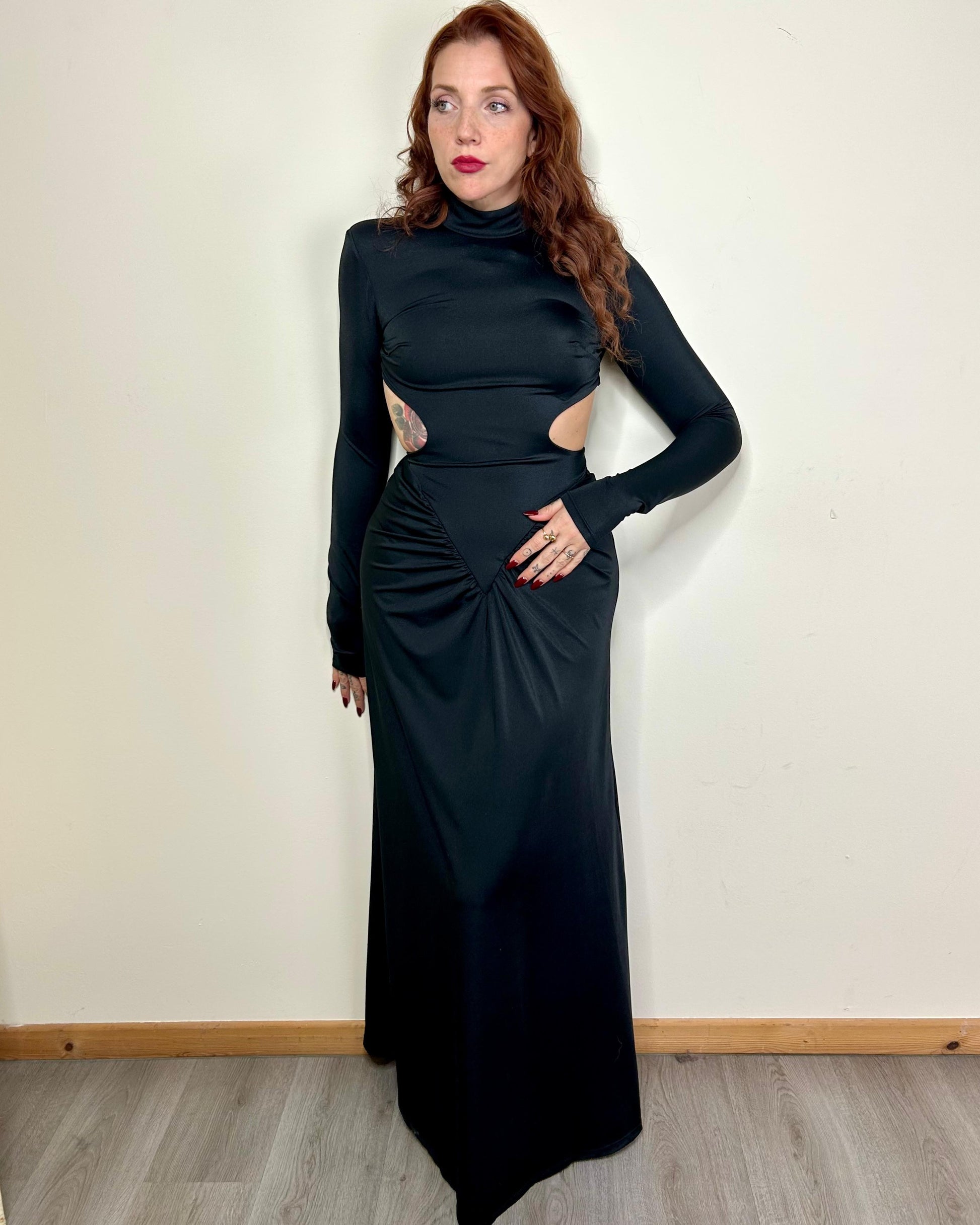 Effetto cut-out in vita e arricciatura sul davanti e dietro.